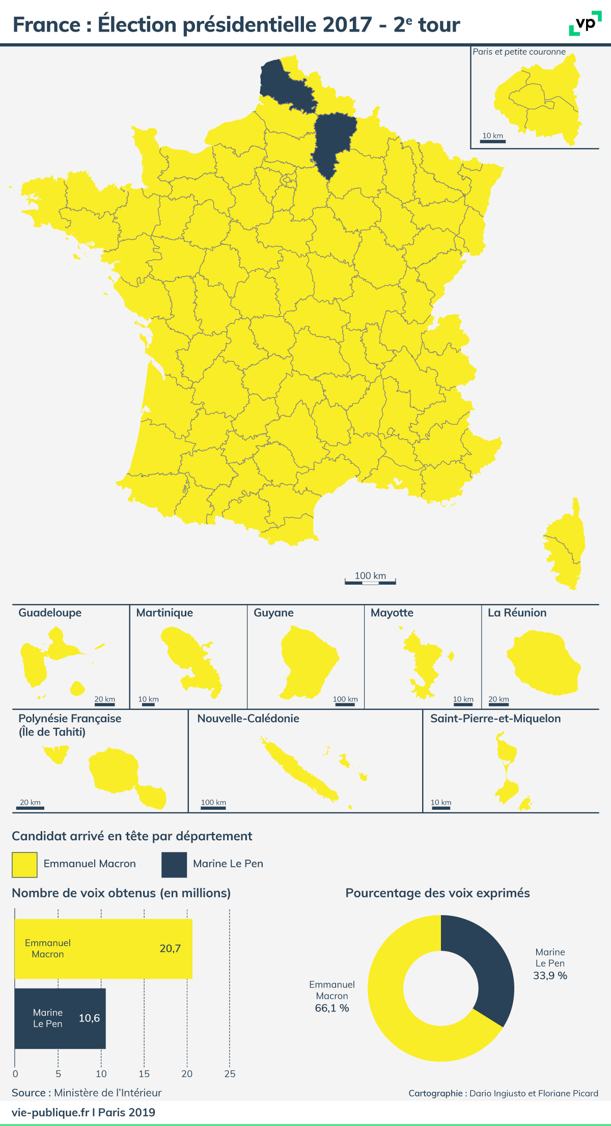 - M. Emmanuel MACRON : 20 743 128 voix, 43,61 % des inscrits, 66,1 % des votes exprimés