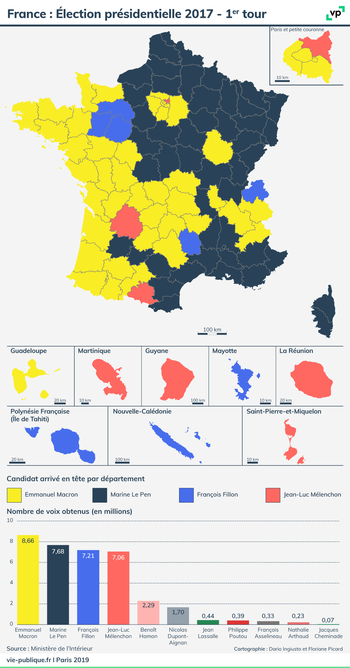 - M. Emmanuel Macron : 8 656 346; 18,19 % des inscrits; 24,01 % des votes exprimés