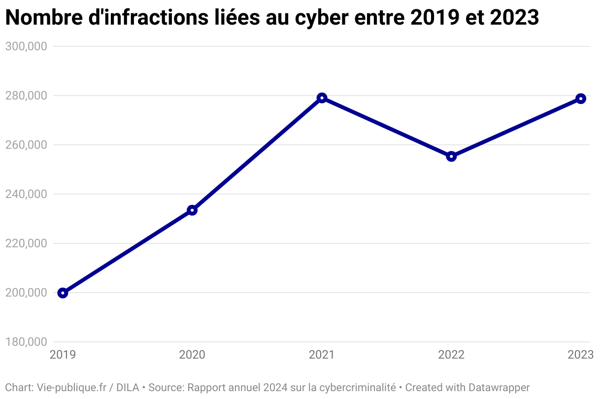 D'après le rapport, les infractions numériques constatées ont augmenté de 40% au cours des cinq dernières années, de 2019 à 2023 (soit une moyenne annuelle de 8%).