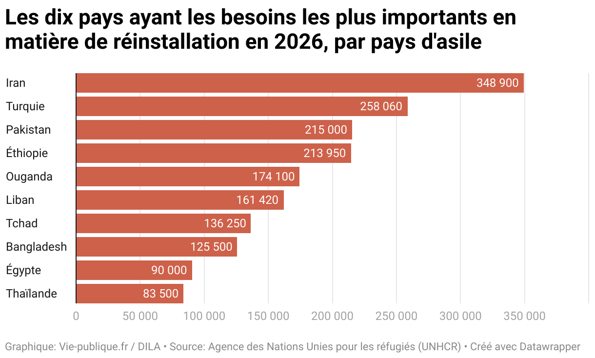 Dans un rapport publié le 24 juin 2025, le Haut Commissariat des Nations-Unies pour les réfugiés (HCR) décrit les besoins mondiaux prévus en matière de réinstallation des populations déplacées pour l'année 2026. Il présente des données sur les principales zones géographiques de provenance des réfugiés ainsi que sur les pays qui les accueillent le plus.