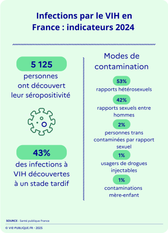 Depuis 2023, l'incidence des contaminations par le VIH s'est stabilisée à 3 400 cas et ne diminue plus. En 2024, le nombre de personnes non diagnostiquées vivant avec le VIH est estimé à 9 700, en diminution par rapport à 2023.