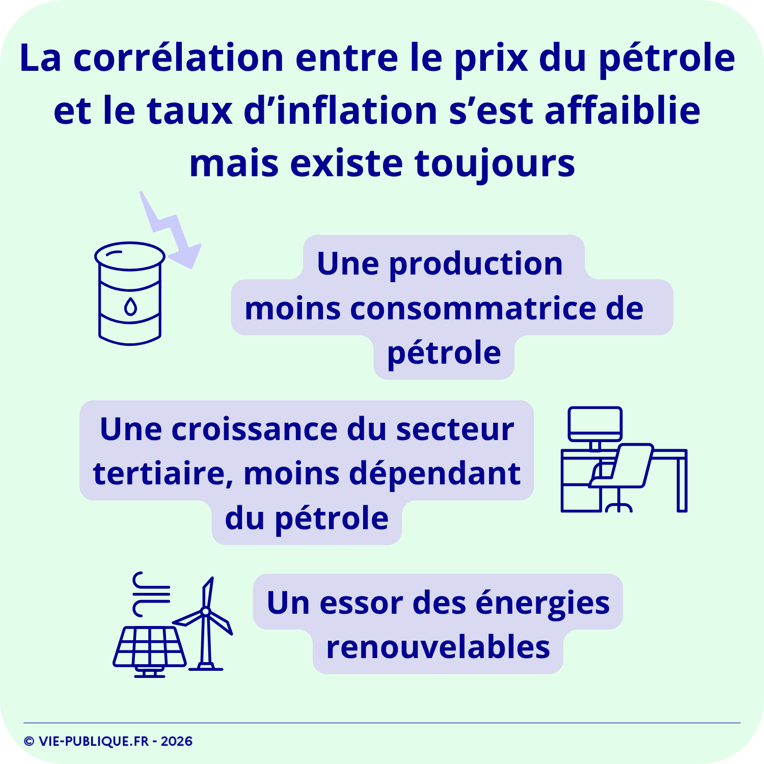 La corrélation entre les cours du pétrole et le taux d'inflation est depuis longtemps étroite. Encore en 2018, la Banque de France estimait qu'"une hausse de 10 euros du prix du pétrole augmente les prix à la consommation de 0,4% en zone euro et en France".