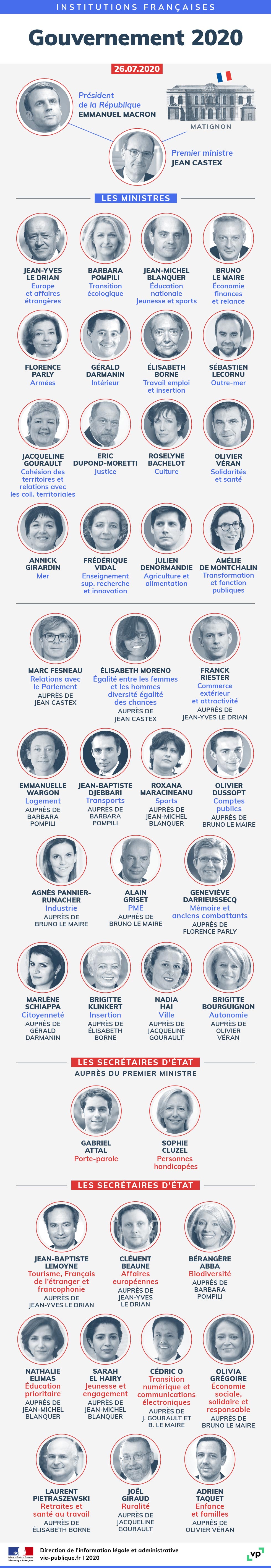 Gouvernement de Jean Castex : l'organigramme au 26 juillet 2020