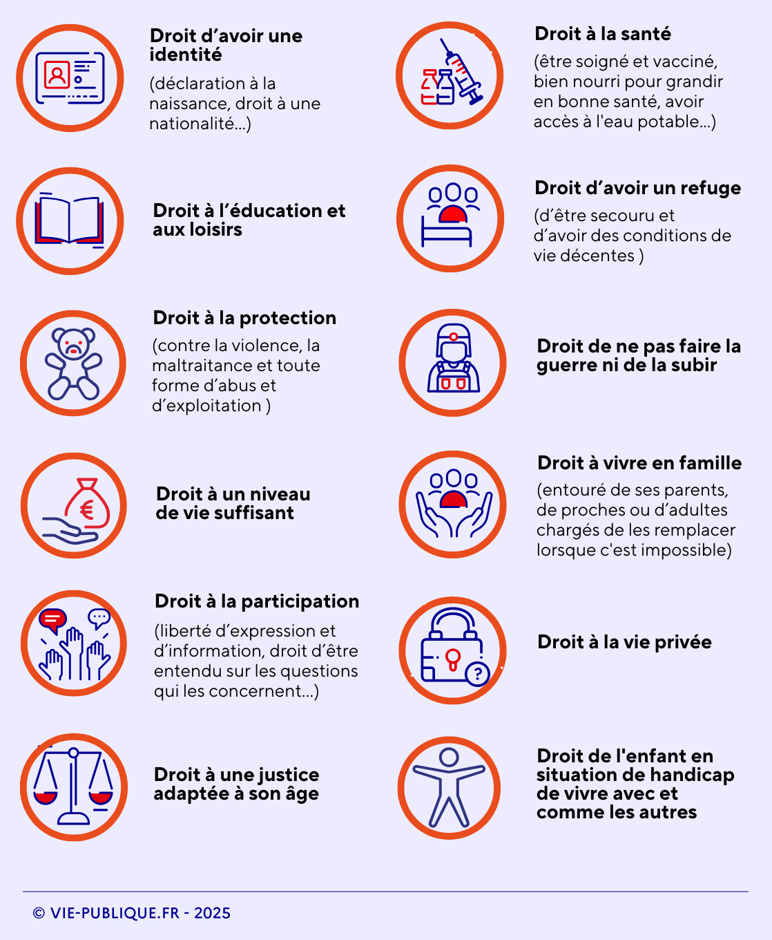 L’enfant doit bénéficier d’une protection spéciale et se voir accorder des possibilités et des facilités par l’effet de la loi et par d’autres moyens, afin d’être en mesure de se développer d’une façon saine et normale sur le plan physique, intellectuel, moral, spirituel et social, dans des conditions de liberté et de dignité. Dans l’adoption de lois à cette fin, l’intérêt supérieur de l’enfant doit être la considération déterminante. Principe 2 de la Déclaration des droits de l'enfant de 1959 |
