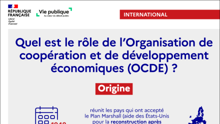 Prévue à l'origine pour soutenir la reconstruction de l'Europe après la Seconde Guerre mondiale, l'OCDE a vu ses missions évoluer. Quels sont les objectifs poursuivis par cette organisation internationale ? Combien d'États en font partie ? Le point en infographie.